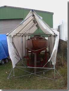Mit dem Kauf bekam ich auch ein Gerüst, mit welchem ich ein Zelt um das Schiff bauen