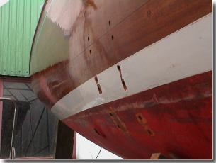 Am Unterwasserschiff musste ich (natürlich) den Eisenkiel entrosten und einige Stellen neu