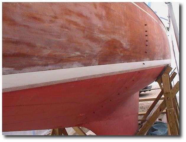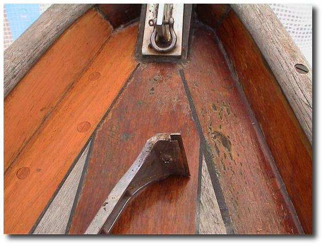 Da im letzten Jahr die Planken auseinandergezogen wurden, wenn man die Wanten gespannt hat, musste etwas unternommen werden. Das mittlere Rüsteisen war nur ca. 40 cm auf einem Spant befestigt. Das Spant hatte aber keine direkte Verbindung mit dem Steven oder Kielschwein. Daher habe ich sie rausgenommen und durch rostfreie Eisen ersetzt, die bis nach ganz unten reichen. Dort sind Sie mit einer Platte verbunden, die an der Wrange befestigt ist auf der auch das Kielschwein befestigt ist. Somit ist ein geschlossenes System mit dem Mast geschaffen worden. Es funktioniert prima und sieht auch sehr gut aus. Das Rüsteisen habe ich mit rostfreien Schrauben festgeschraubt und natürlich wieder von außen verpfropft.